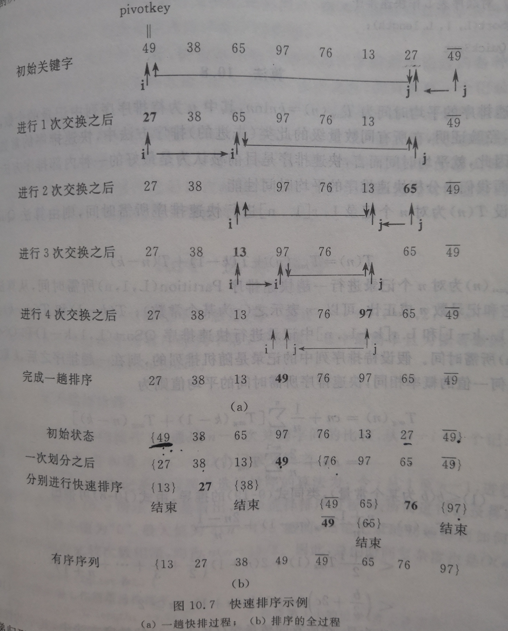 (1)附设两个指针low和high,他们的初值分别为low和high,设枢纽记录的关键字为pivotkey。