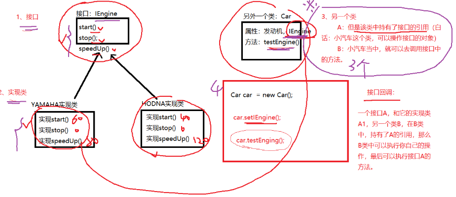 首有个接口A,和它 实现类。然后在另一个类B中,持有A的引用,那么在B类中可以调用接口A的方法。这就是一种回调。