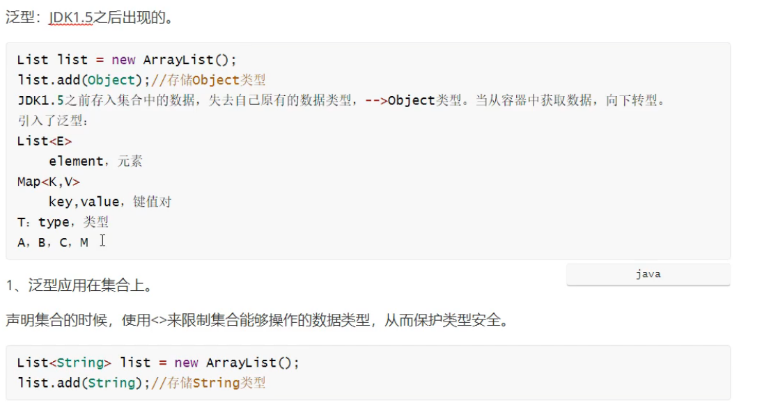 //泛型的擦除:定义类有泛型,但是创建对象的时候没有指明泛型。该类型就是Object类型了
