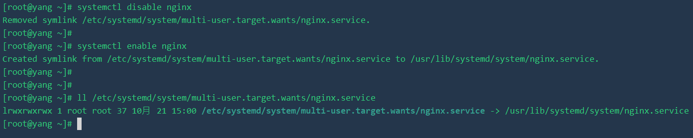 上面的命令相当于在/etc/systemd/system目录添加一个符号链接,指向/usr/lib/systemd/system里面的httpd.service文件。