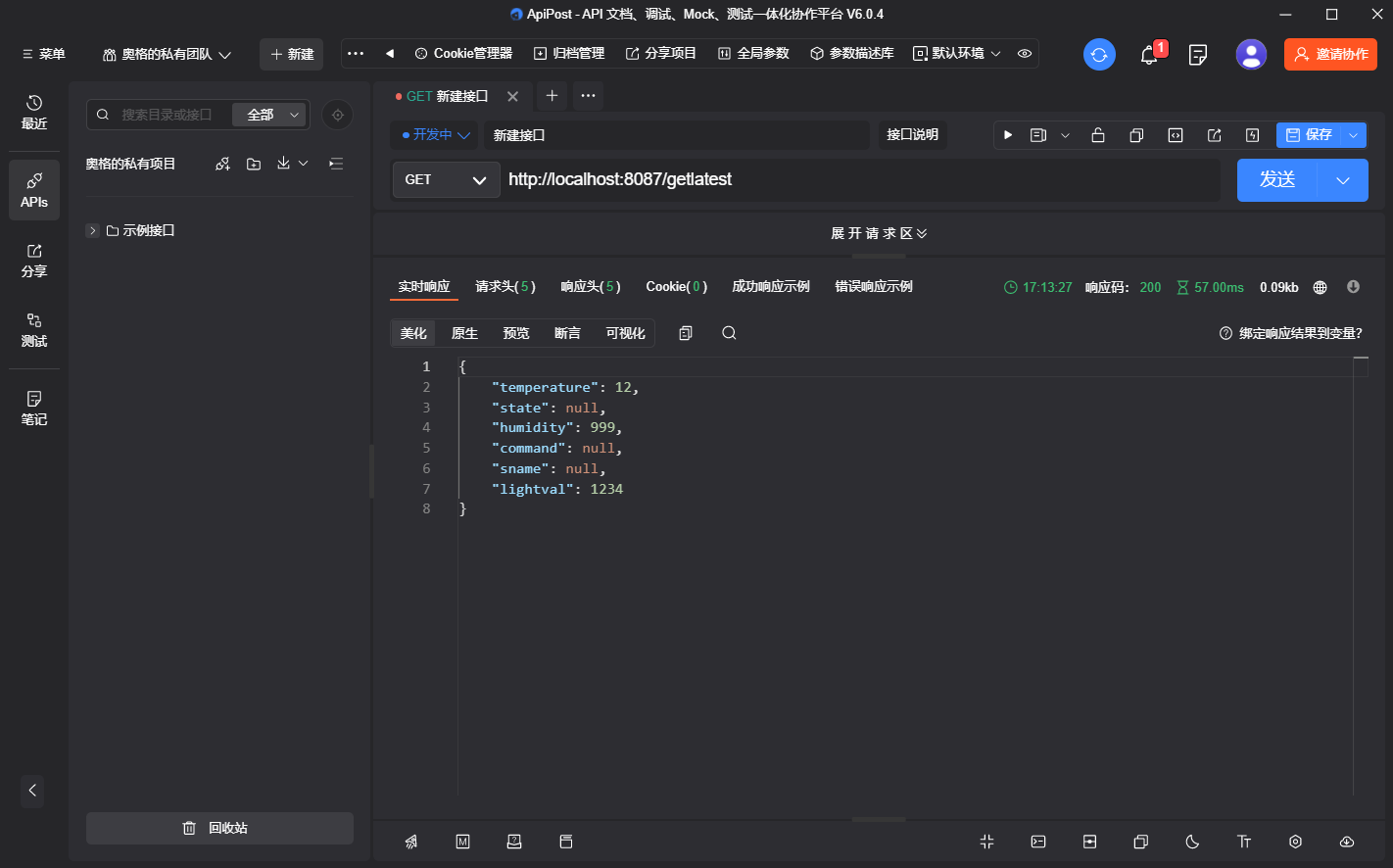 在APIPOST(一个国产的api测试工具)发起get请求也符合预期。