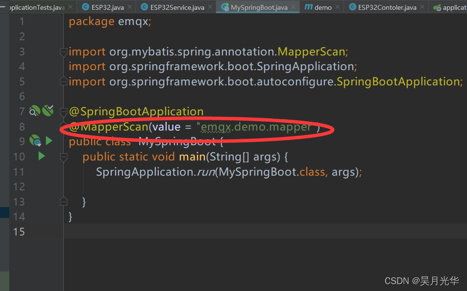 @MapperScan(value = "emqx.demo.mapper")说明mapper所在的路径。