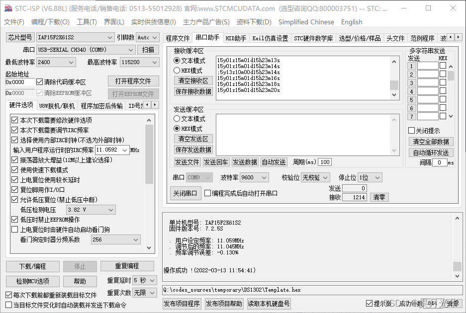 本次我用这个DS1302在数码管上显示时钟的时 分 秒,配合按键串口打印年周月日时分秒已经温度(按键6打印时间,按键4配合按键5打印温度,更多详细见代码)。