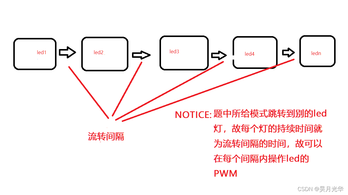 (2)让led以12.5%递增的亮度来实现跑马效果,跑马时间间隔400ms.