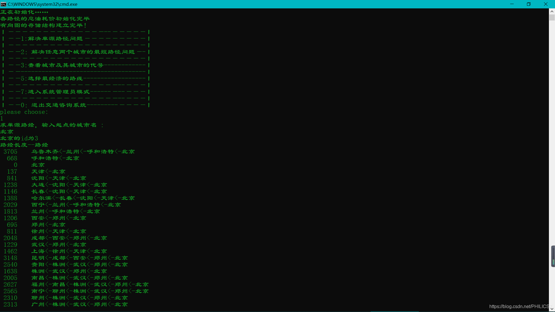 (2)咨询以用户和计算机对话方式进行,要注意人机交互的屏幕界面。由用户选择输入起点、终点,输出信息:旅行者从起点、终点经过的每一座城市。