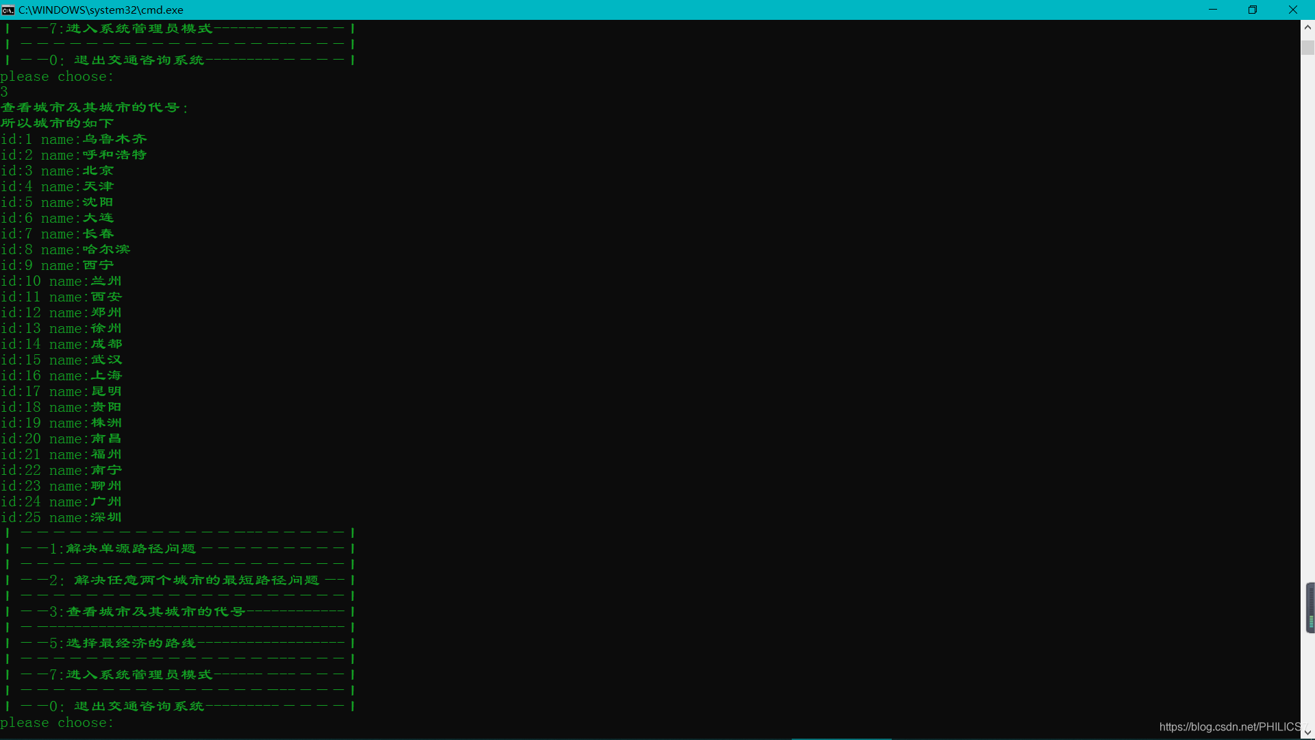 int getid(char name[], MGraph *G);//根据名字获取城市id