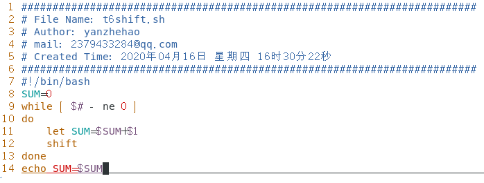 6.编写脚本实现计算用户输入参数数字的和,分别用shift和for循环实现。