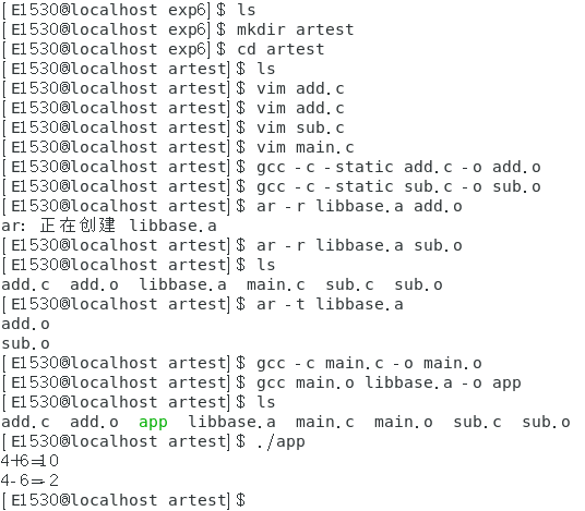 ar:建立,修改档案或从档案中抽取成员 ar -r :替换归档文件中已有的文件或加入新文件 ar -t :显示归档文件内容
