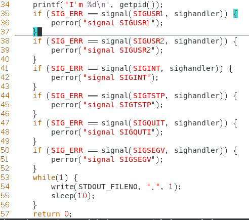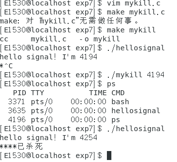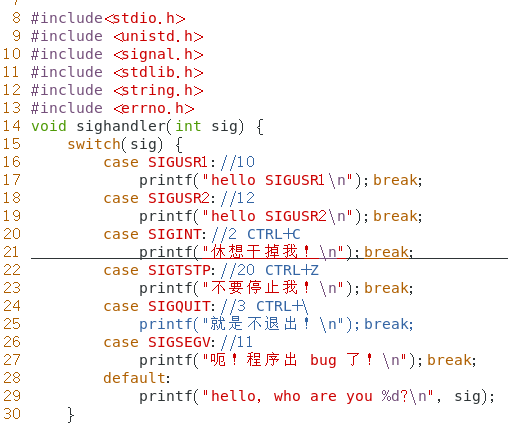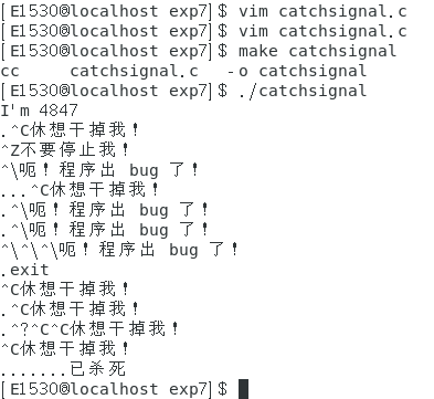 1.编写一个简单的程序并运行,然后向该进程发送不同的信号以观察该进程对接收到信号的反应。