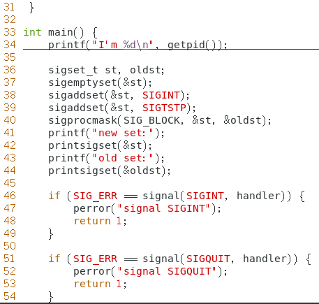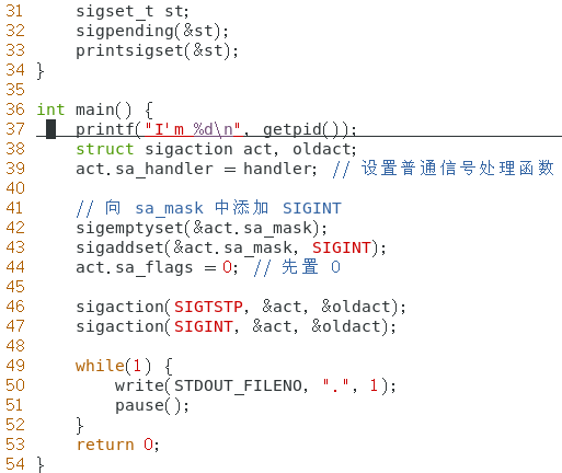 在一个进程中,保存了两个信号集(在PCB中),分别是阻塞信号集,还有一个未决信号集。当你使用sigprocmask的时候,就会修改阻塞信号集。 当你的进程一收到信号且该信号被阻塞,它首先进入到未决信号集中(就是一个 sigset_t ), 当未决信号集中的信号被信号处理函数(你自己定义的或者系统默认的)处理,就会从未决信号集中删除。 如果一个信号加入阻塞信号集,该信号的信号处理函数就不会被调用。 通过 man sigprocmask 来查看手册: