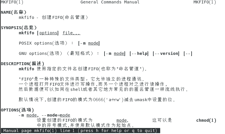 1.通过命令 mkfifo 创建管道