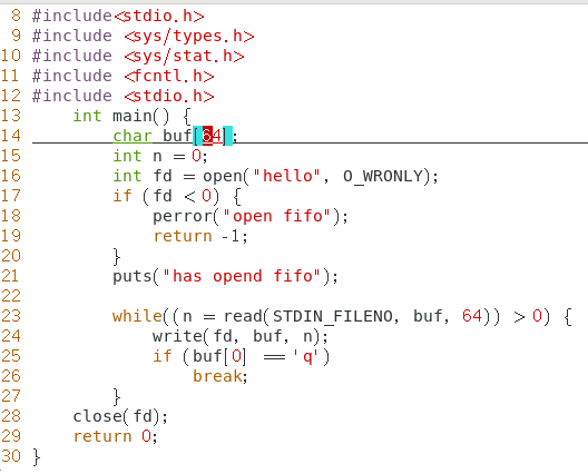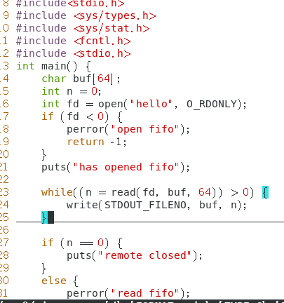 c) fifo 文件特性 根据前面两个实验,可以总结: (1)文件属性前面标注的文件类型是 p ,代表管道 (2)文件大小是 0 (3)fifo 文件需要有读写两端,否则在打开 fifo 文件时会阻塞 如果在 open 的时候,使用了非阻塞方式,肯定是不会阻塞的。 特别地,如果以非阻塞写的方式 open ,同时没有进程为该文件以读的方式打开,会导致 open 返回错误(-1),同时 errno 设置成ENXIO.