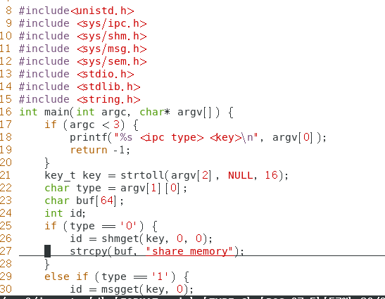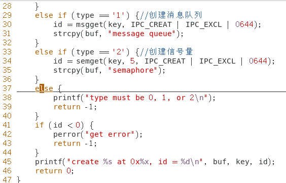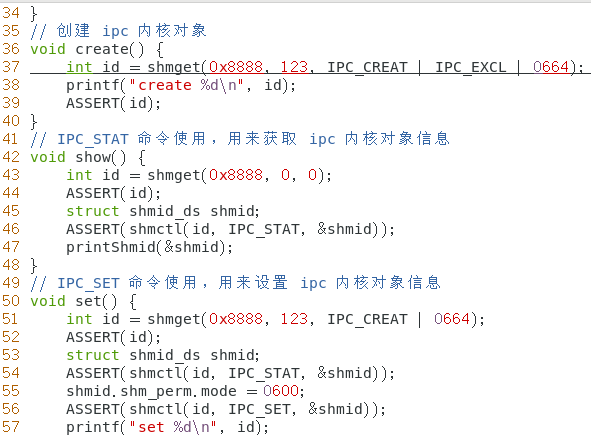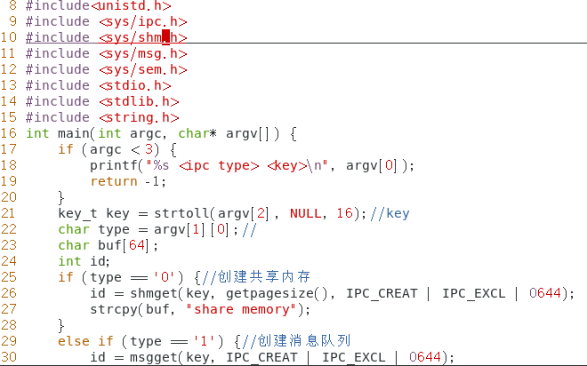 例题:程序 ipccreate 用于在指定的键值上创建 ipc 内核对象。使用格式为 ./ipccreate ,比如./ipccreate 0 0x8888 表示在键值 0x8888 上创建共享内存。