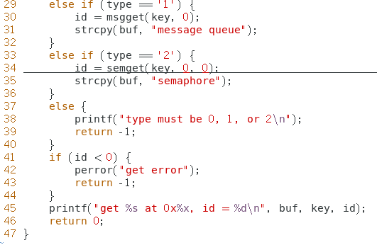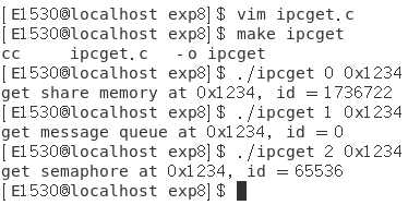 程序 ipcget 用于在指定的键值上获取 ipc 内核对象的 id 号。 使用格式为 ./ipcget ,比如./ipcget 0 0x8888 表示获取键值 0x8888 上的共享内存 id 号。