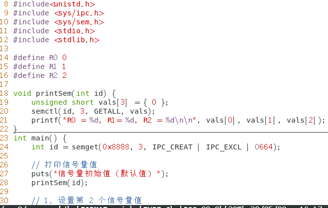设置和获取信号量值的函数 semctl :