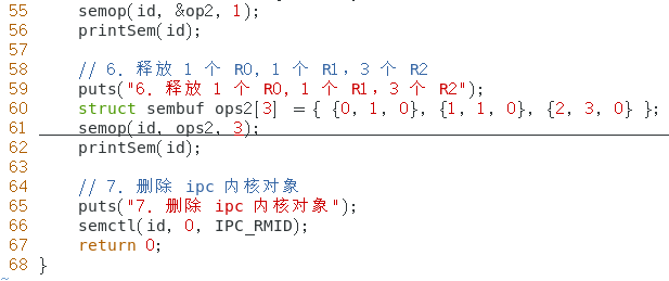 请求和释放信号量 semop