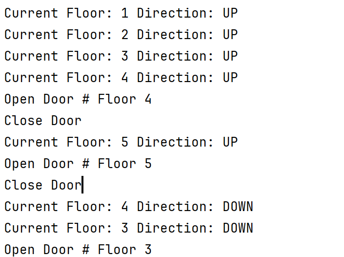 System.out.printf("Current Floor: %d Direction: DOWN\n", elevator.getCurrentFloor());