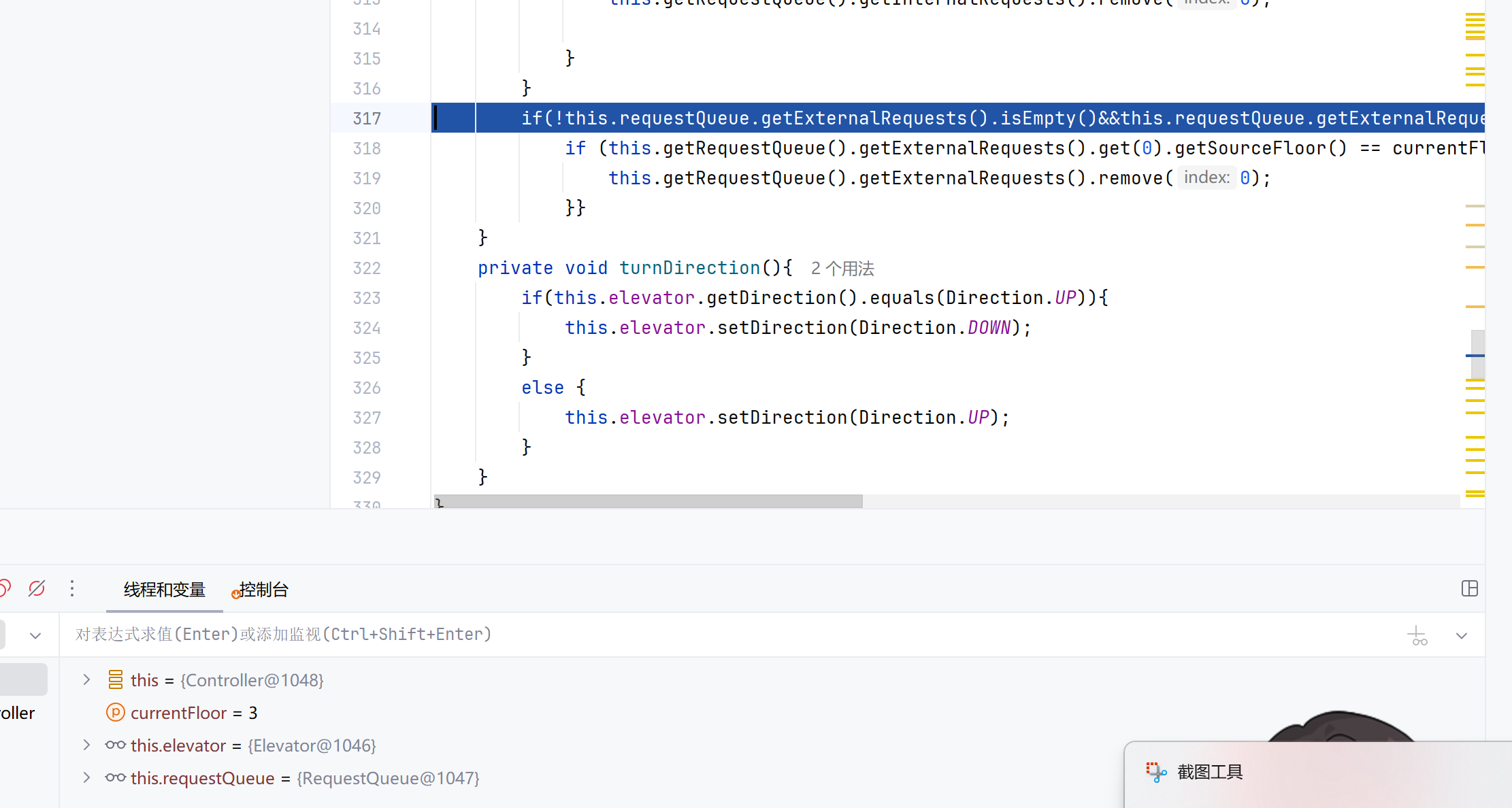 在只剩下外部请求,电梯运行方向与目标方向不同时,外部请求的请求位置已经处理过了而没被正确移除列队。