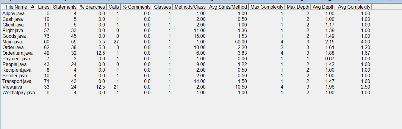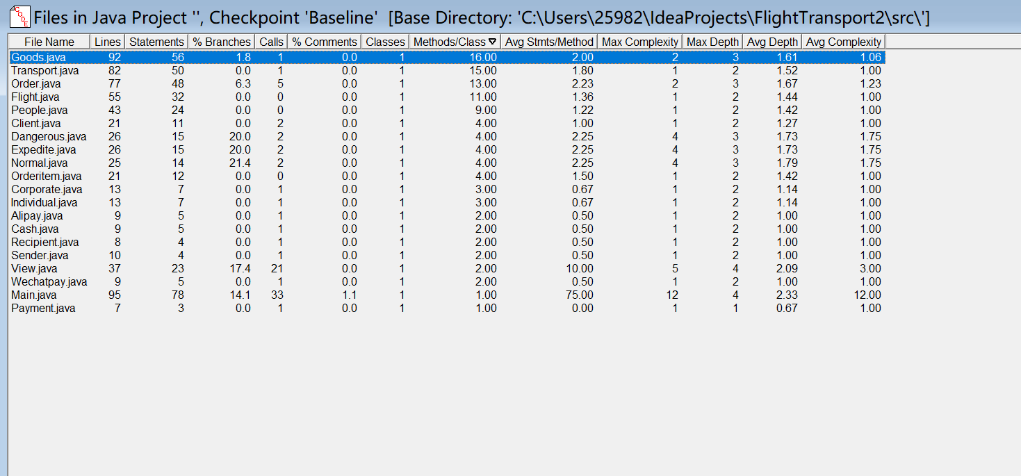Maximum Complexity:最大复杂度为 11 ,表示Main.main()方法的圈复杂度(衡量方法中独立执行路径的数量)为 11。