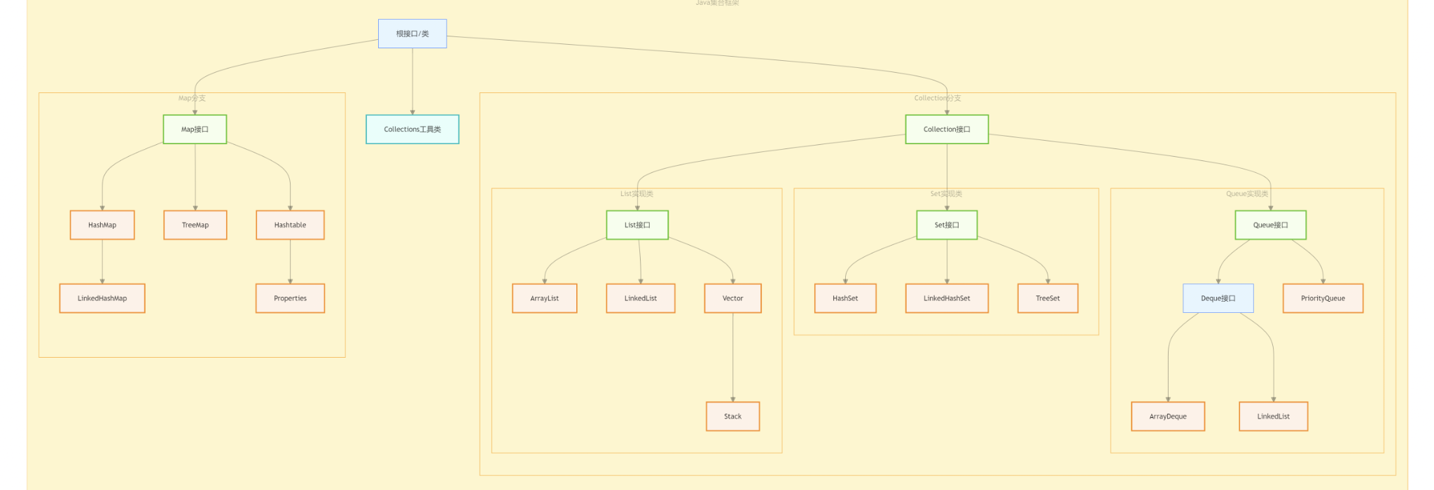 Java集合框架主要包含接口、实现类和迭代器三部分,以下是其体系结构的简述: