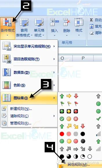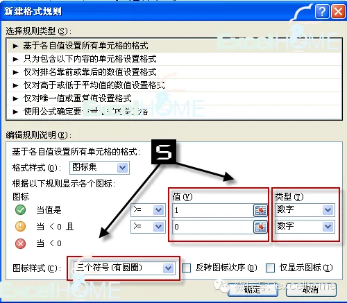 “图标集”是Excel2007版本以后的新增功能,这个技巧其实不算复杂,主要包含了“自定义数字格式”和“条件格式”两部分内容。