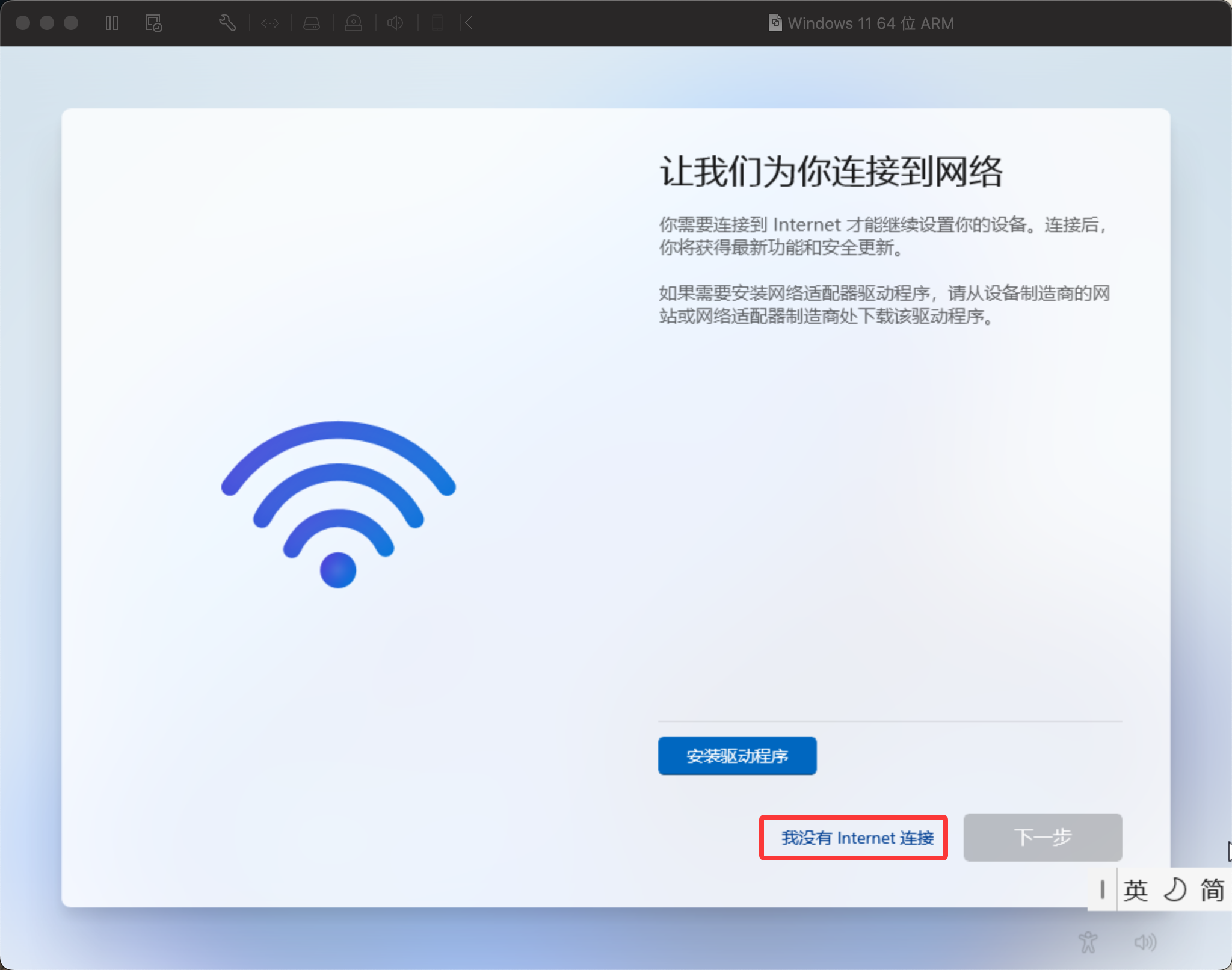 没有联网,无法进行下一步。