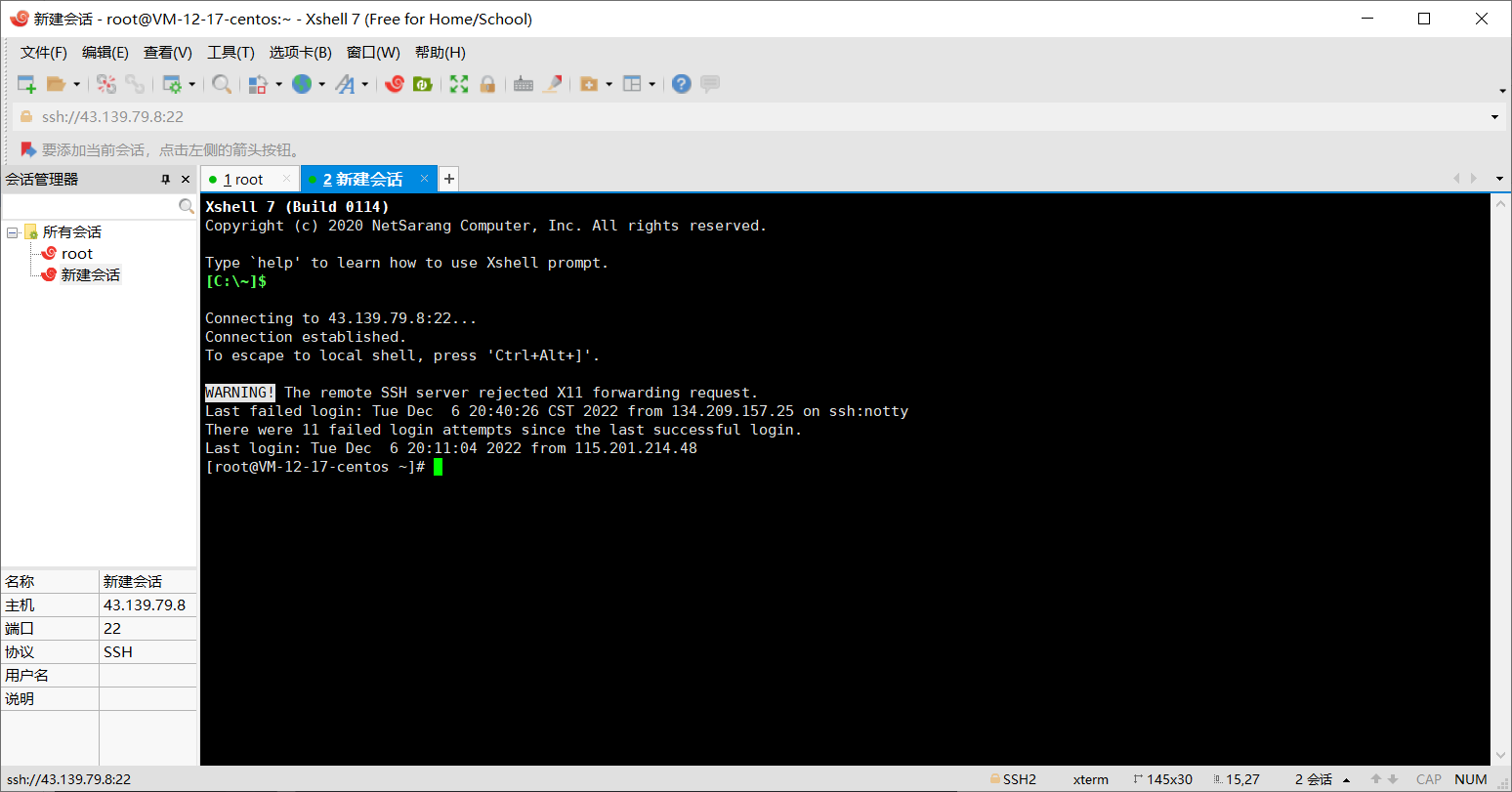 修改完后重启ssh服务