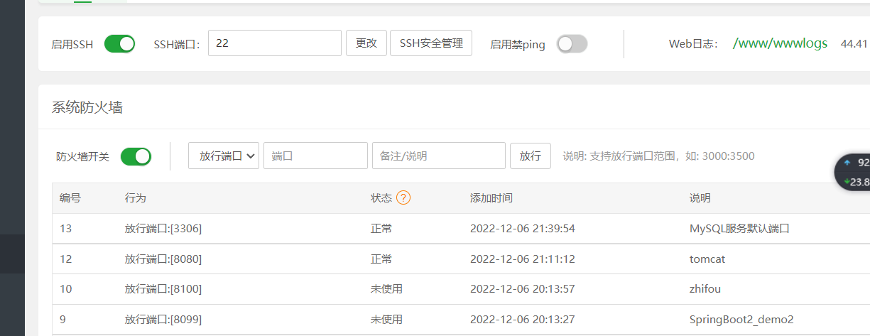 首先开放3306端口