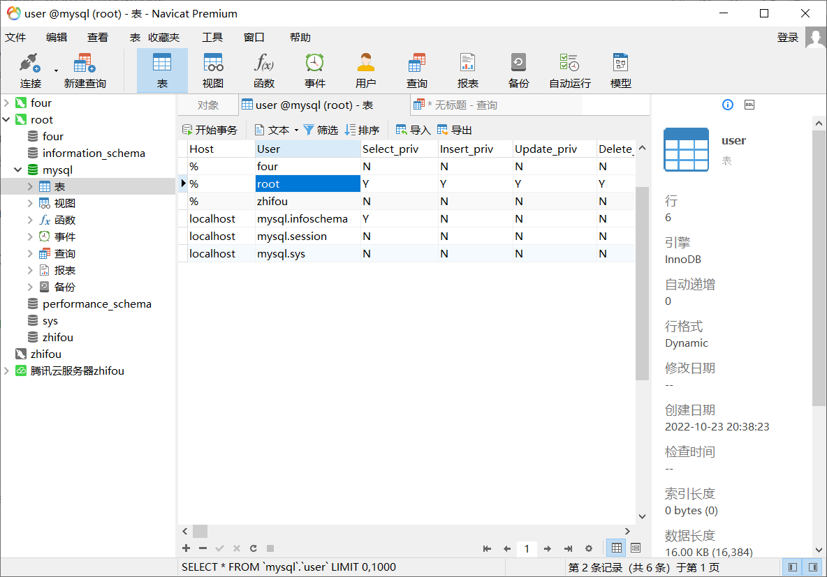 用腾讯云的连接,主机改成服务器的ip,用户名保持两方数据库一样