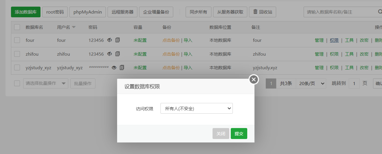 !!!这个地方记得打开,不然一直会报错 1045 - Access denied for user 'four'@'39.185.200.44' (using password: YES)
