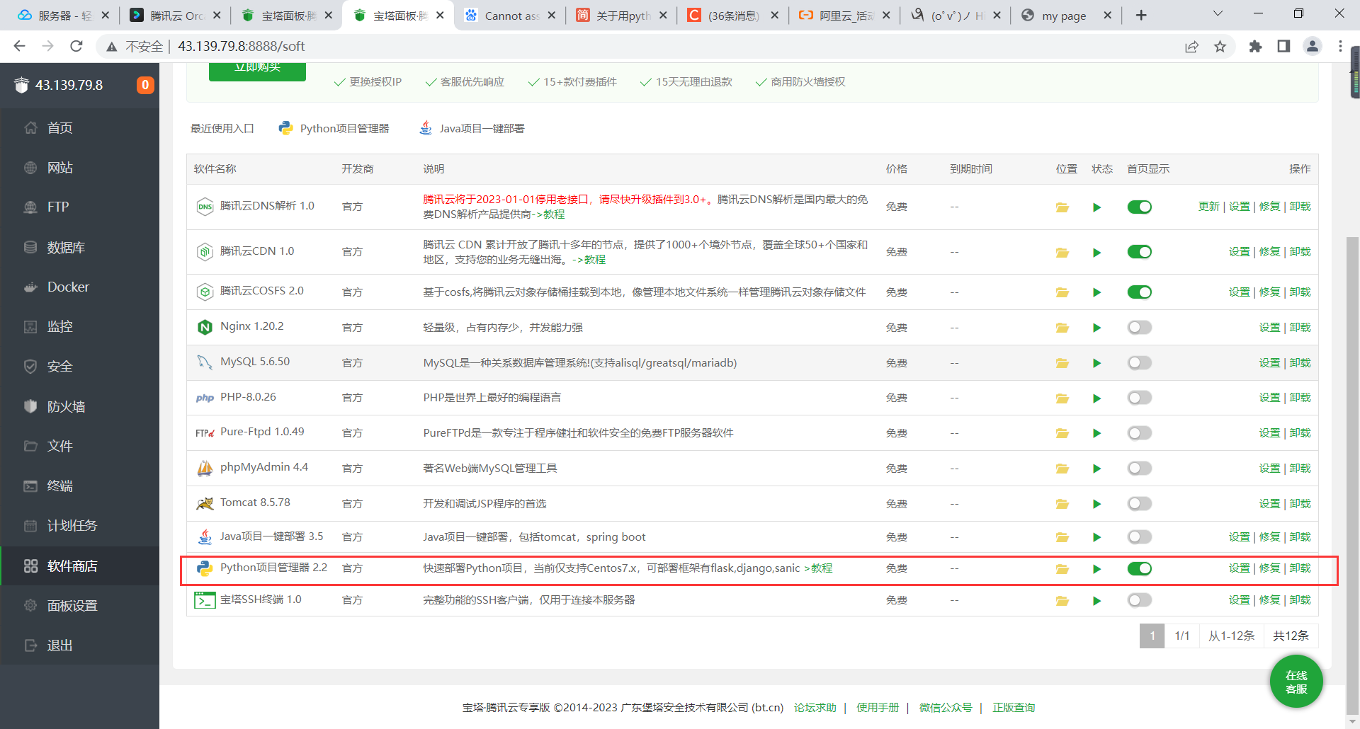 python 云服务器部署 flask 项目
