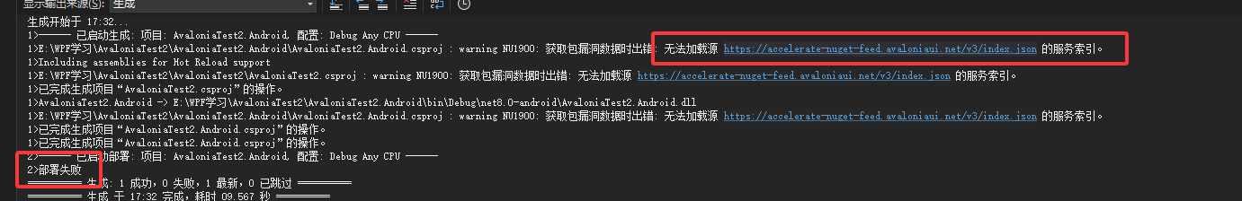 一直提示无法加载源 https://accelerate-nuget-feed.avaloniaui.net/v3/index.json 的服务索引。