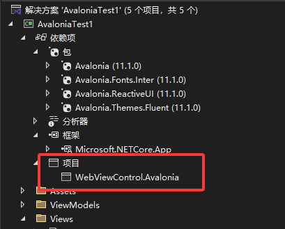 将项目源码下载,AvaloniaTest1加载项目WebViewControl.Avalonia源码
