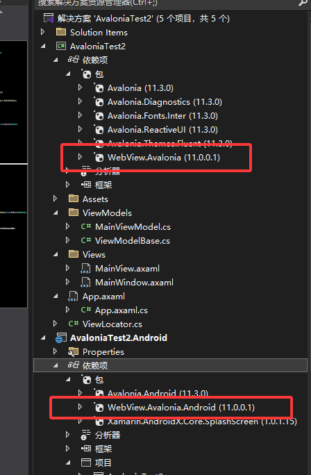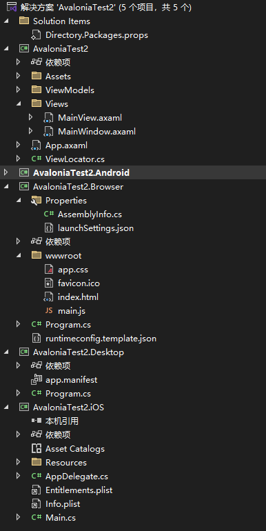 资源管理器当中会出现适配不同平台的类库。主程序实际是AvaloniaTest2,本质还是wpf进行跨平台。