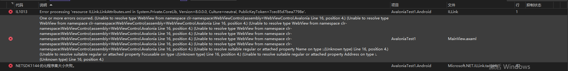 One or more errors occurred. (Unable to resolve type WebView from namespace clr-namespace:WebViewControl;assembly=WebViewControl.Avalonia Line 16, position 4.) (Unable to resolve type WebView from namespace clr-namespace:WebViewControl;assembly=WebViewControl.Avalonia Line 16, position 4.) (Unable to resolve type WebView from namespace clr-namespace:WebViewControl;assembly=WebViewControl.Avalonia Line 16, position 4.) (Unable to resolve type WebView from namespace clr-namespace:WebViewControl;assembly=WebViewControl.Avalonia Line 16, position 4.) (Unable to resolve type WebView from namespace clr-namespace:WebViewControl;assembly=WebViewControl.Avalonia Line 16, position 4.) (Unable to resolve type WebView from namespace clr-namespace:WebViewControl;assembly=WebViewControl.Avalonia Line 16, position 4.) (Unable to resolve type WebView from namespace clr-namespace:WebViewControl;assembly=WebViewControl.Avalonia Line 16, position 4.) (Unable to resolve suitable regular or attached property Name on type :.{Unknown type} Line 16, position 4.) (Unable to resolve suitable regular or attached property Focusable on type :.{Unknown type} Line 16, position 4.) (Unable to resolve suitable regular or attached property Address on type :.{Unknown type} Line 16, position 4.)