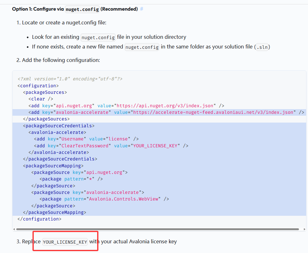 这里的LINCENSE_KEY没有,直接访问这个https://accelerate-nuget-feed.avaloniaui.net/v3/index.json地址也需要一个账户名密码,目前卡住,无法继续进行。