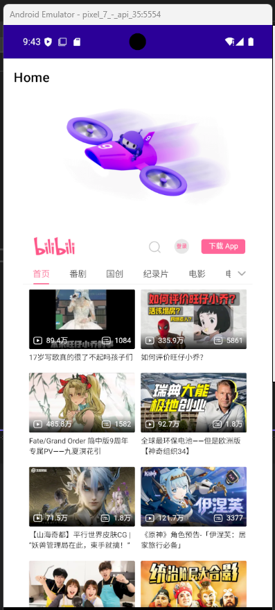 同样支持跨平台安卓部署,且能够直接使用webView控件。手动增加webView代码打开B站