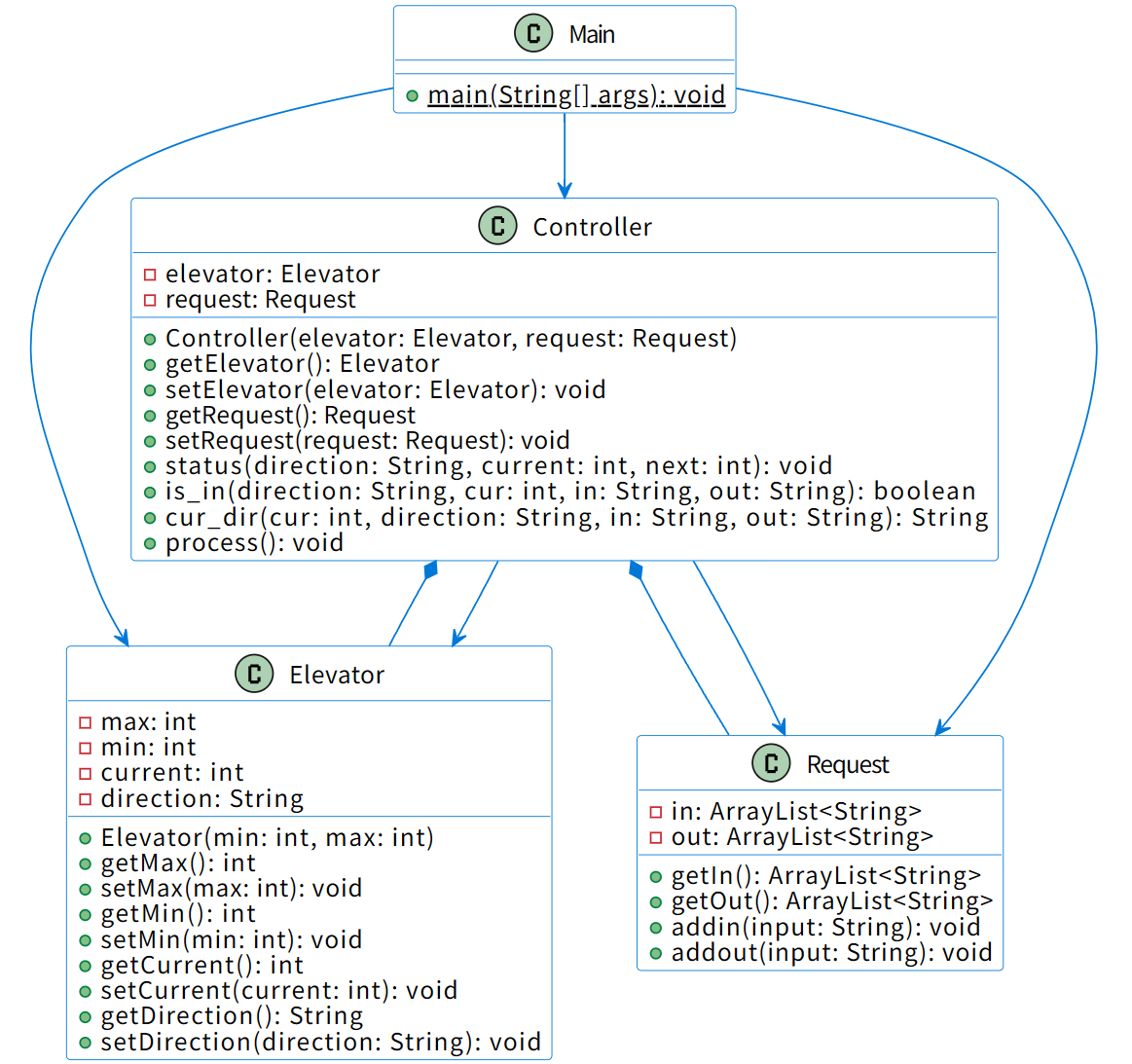 注意:本次作业类设计必须符合如上要求(包含但不限于乘客请求类、电梯类、请求队列类及控制类,其中控制类专门负责电梯调度过程),凡是不符合类设计要求此题不得分,另外,PTA得分代码界定为第一次提交的最高分代码(因此千万不要把第一次电梯程序提交到本次题目中测试)。
