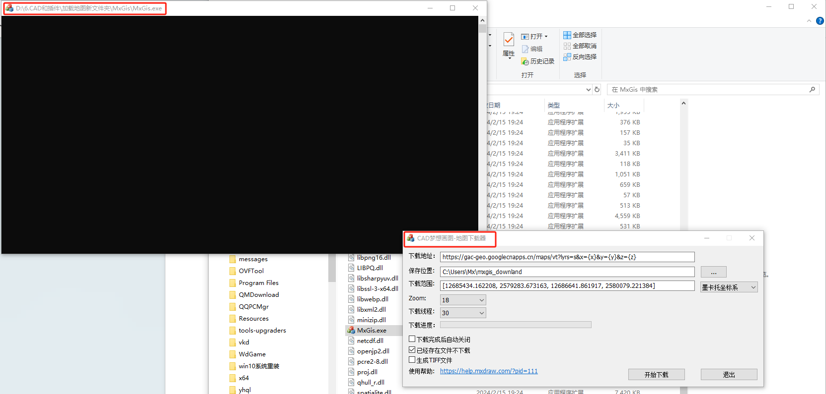 1. 下载链接:https://demo.mxdraw3d.com:3562/MxGis_map download.7z,下载后解压到指定文件夹,打开后会看到启动地图下载器,双击运行,如下图: