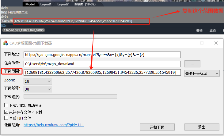 4. 复制该数据后,打开地图下载器,将数据粘贴到下载范围数据框内,如下图所示: