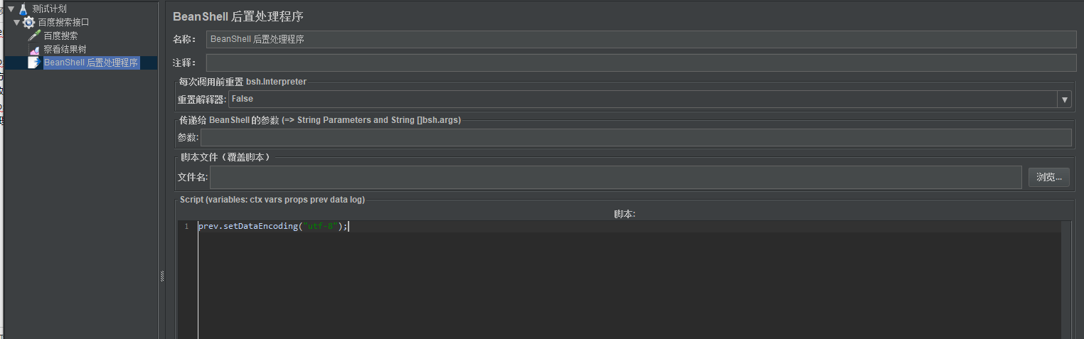 在后置处理器中添加“prev.setDataEncoding("utf-8");”即可