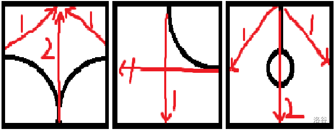 为了使代码短一些,可以将上面三种需要加额外边的格子分别旋转到一个指定的状态,记录旋转的次数。至少不会写三百行(