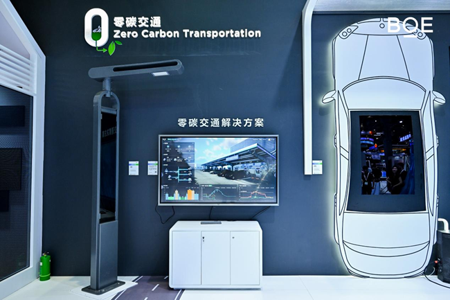 在零碳交通展区内,BOE(京东方)带来了首发的钙钛矿CIPV(车载光伏)调光玻璃天幕,其应用柔性钙钛矿发电技术,通过太阳能自主驱动实现车顶动态变色,在烈日下和阴雨环境中自适应车内明暗,重新定义燃油车的智能交互体验。而BOE(京东方)展出的多款交通领域综合能源解决方案均融合了光伏、储能与充电技术,搭载光储充一体化管理系统,有效提升能源利用率。同时通过AI数智化实现“自发自用、余电存储、灵活调峰”的低碳模式,助力交通绿色转型。