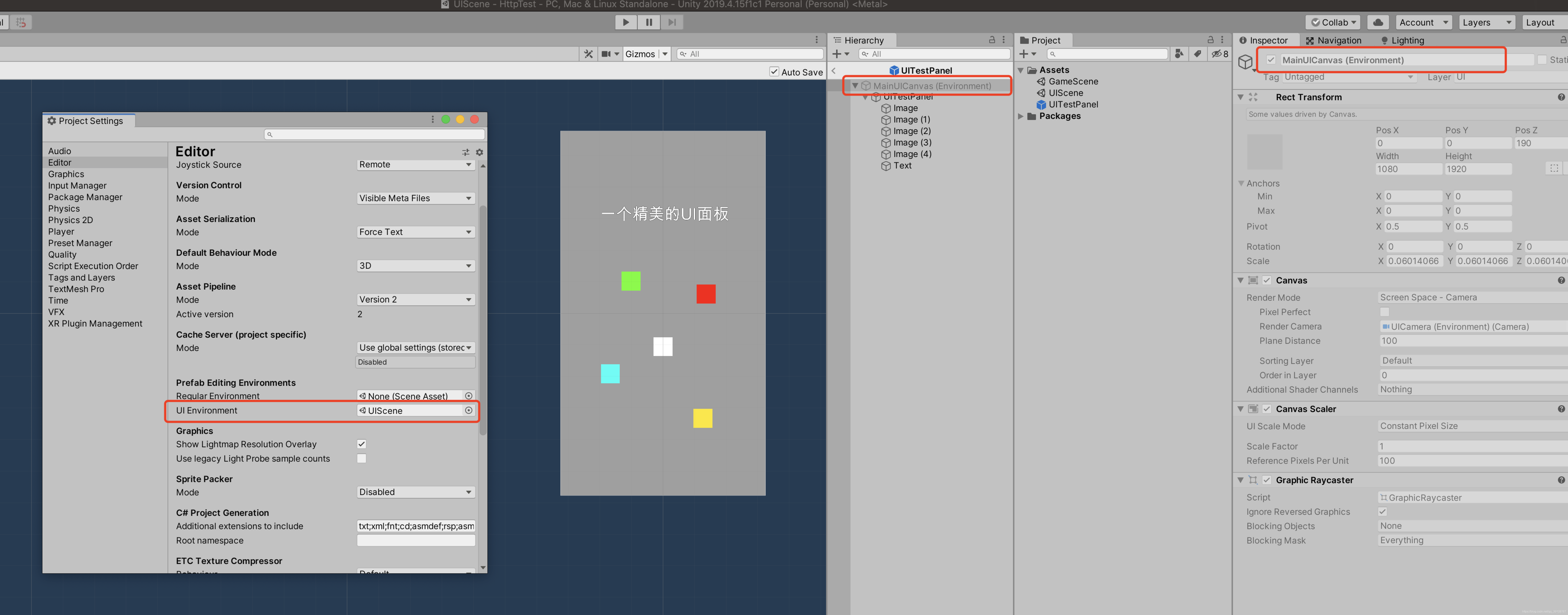 比如Canvas的渲染模式设置为"Screen Space - Camera",打开UI prefab,却是在Unity提供的默认Canvas下预览的,这样很多参数设置就会有问题,需要手动修改预览环境: