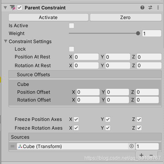 - Freeze Position Axes:要冻结的移动轴,冻结的轴向才能关联目标对象自动移动