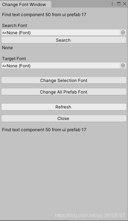 一般情况UI界面都是动态加载到场景,一键对UI Prefab批量修改字体,如果要修改字号、字体格式或者对齐方式等Text组件的其他操作,可以根据需求继续扩展。