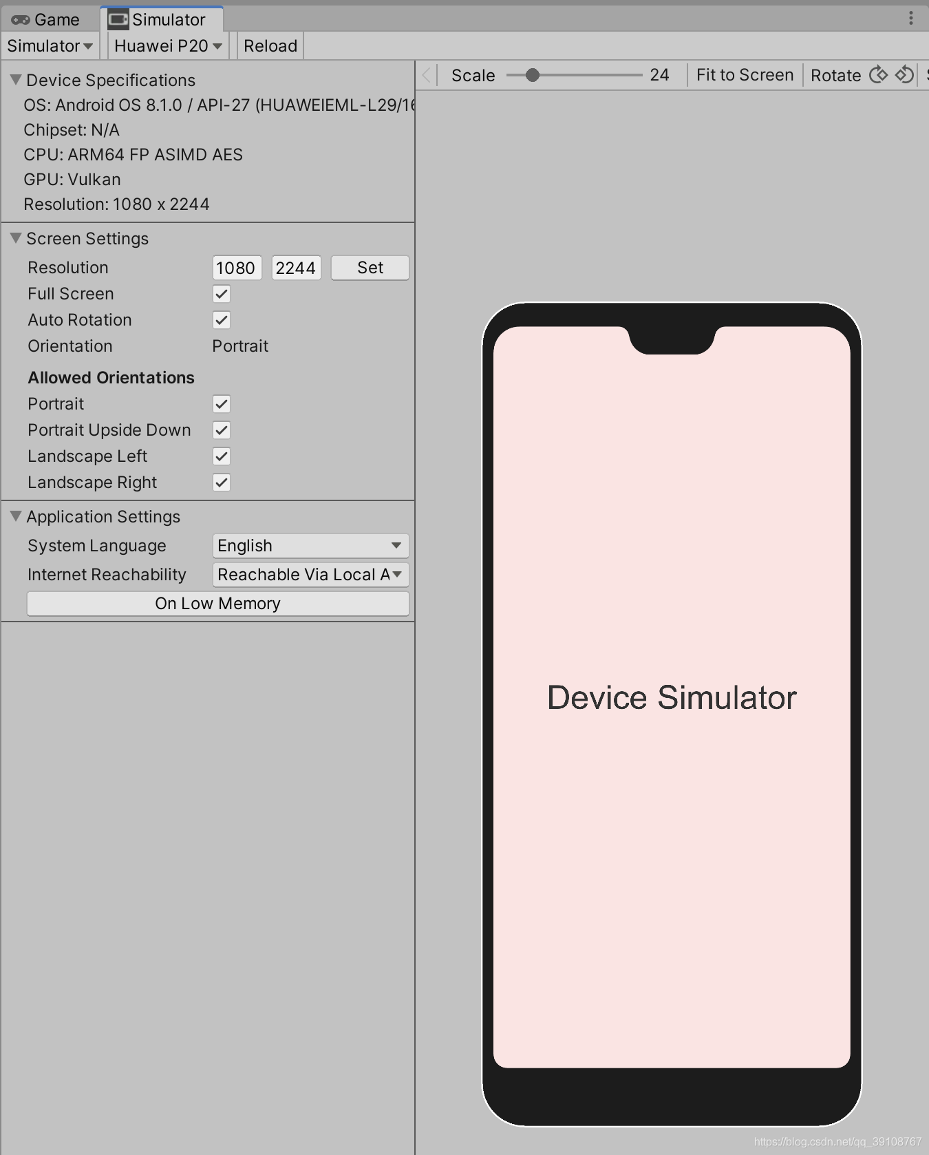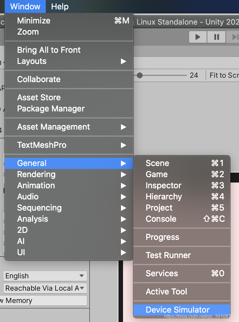 打开方式:Package Manager包管理器下载,WIndow => General => Device Simulator