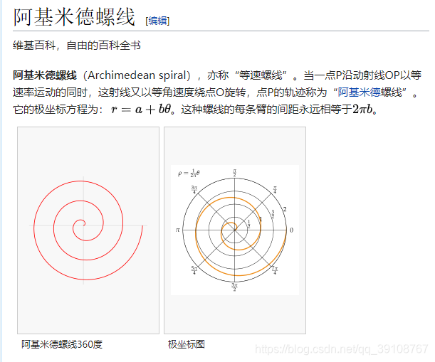 //θ: 极角,单位为度,表示阿基米德螺旋线转过的总度数(弧度)