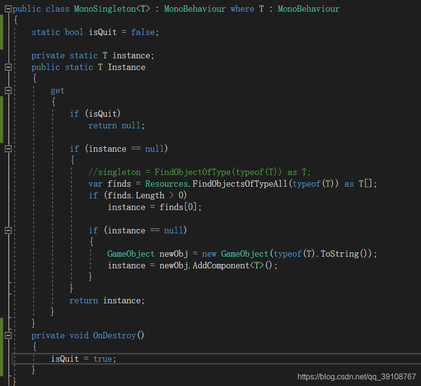 根据参考,在单例中增加判断,虽然会解决这个报错,但是会生成新的报错,因为A脚本被销毁后,单例返回空值,在运行到B脚本的OnDestroy时,报错:A的单例为空,因此这样修改也不可行