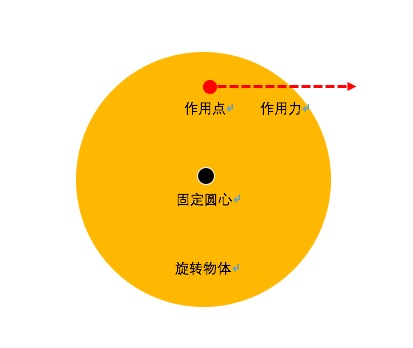 如图,黄色圆形作为旋转对象,受外力绕圆心顺时针或逆时针旋转